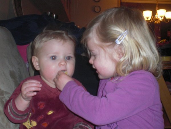 Der blev krammet med hinanden, og Bianca gav Celina lidt banan.