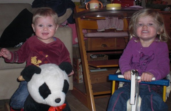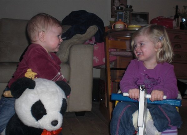 Og så hyggede de sig på henholdsvis gyngehest og gynge-bjørn.