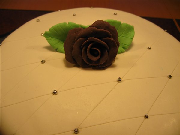 Er med hjemmelavede chokobunde i 3 lag, med nougat/mørk chokocreme og rutebilscreme imellem, ud over kagen et lag marcipan og tilsidst pyntet med mmf.