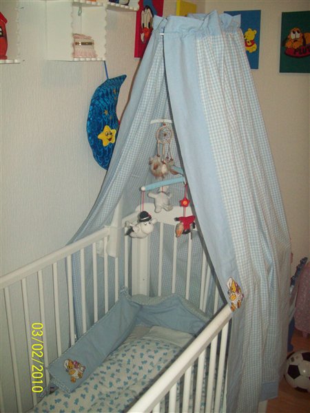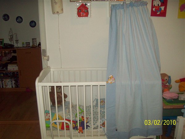 Vi har endelig fået købt en himmelpind til tremmesegen, da vi af min kusine havde fået en himmel. Jeg endte så med at måtte pille lidt op og syg dem om, da de himmelpinden man kan få i dag ikk passede til himlen. Vi har købt lidt bleer.