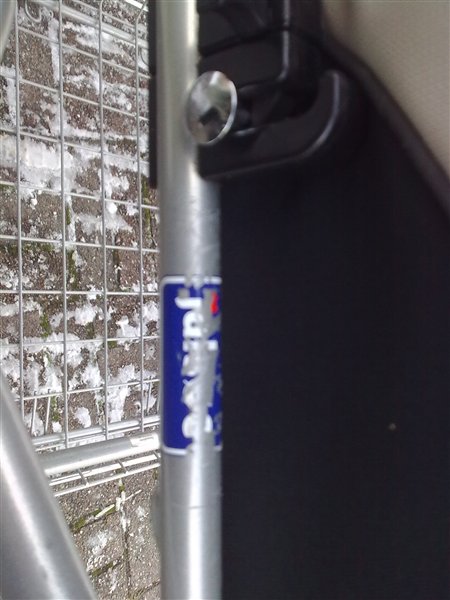 Den har ingen rust, pletter eller andet. dog et par ridser der hvor man skal sætte kassen på stellet, da den vejer meget godt for mor her