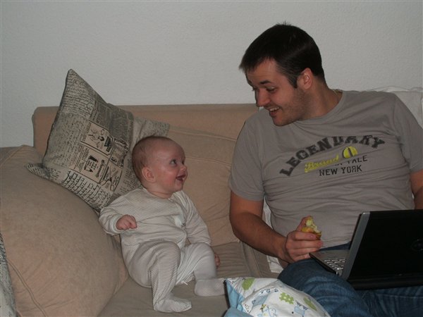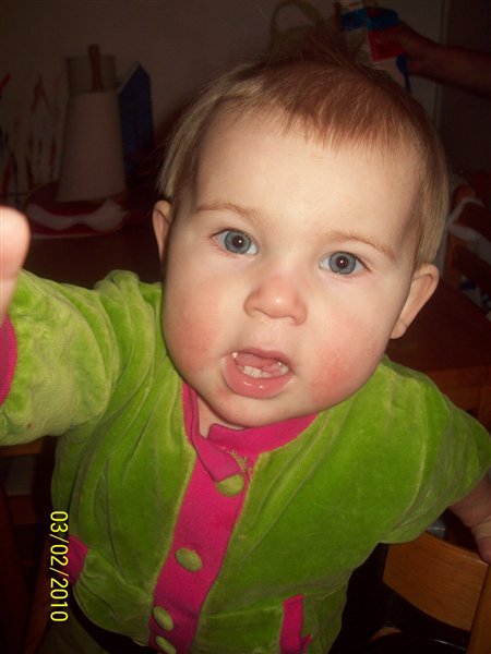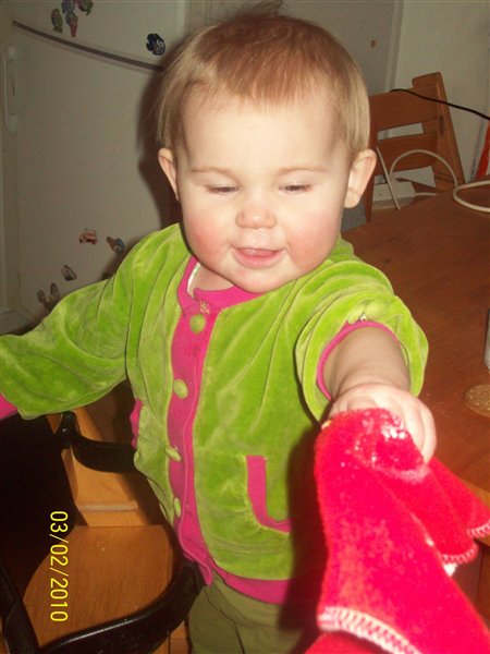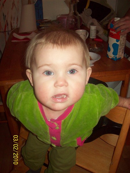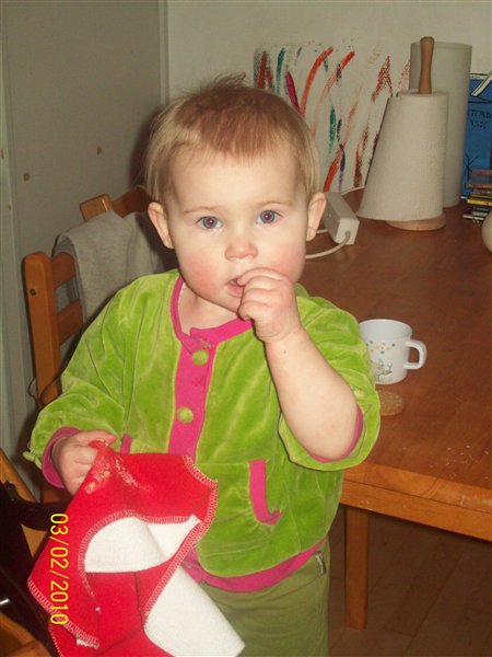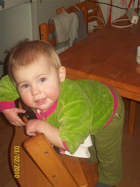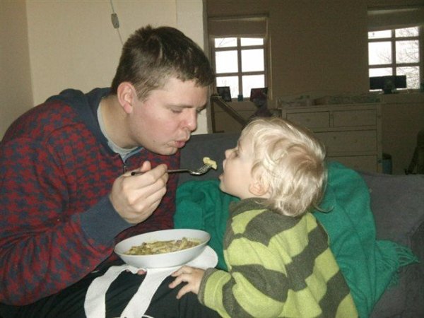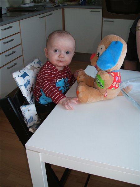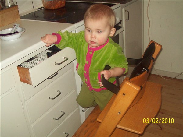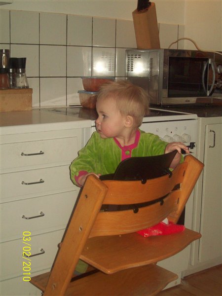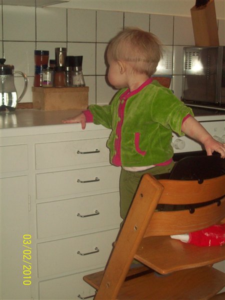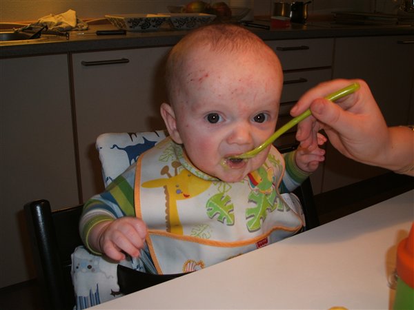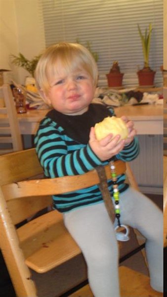 Her er lige lidt af Emil,et fra i dag hvor han guflede æble imens jeg biksede mad sammen.