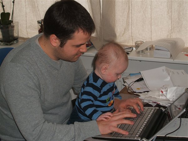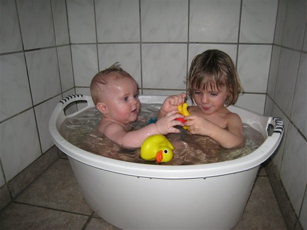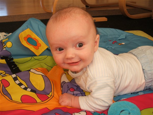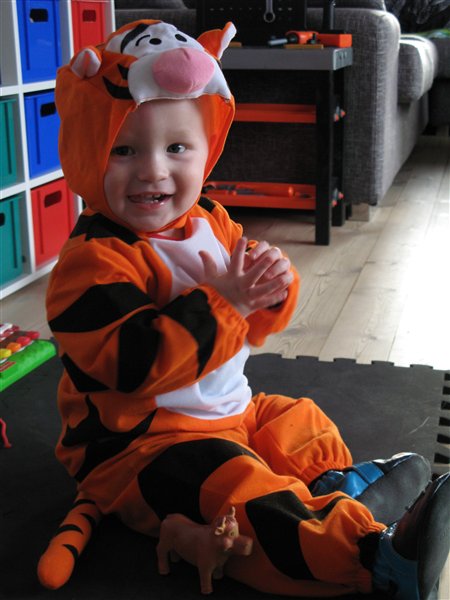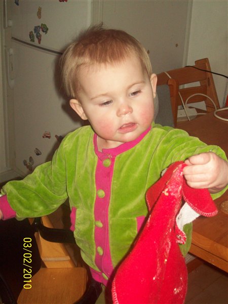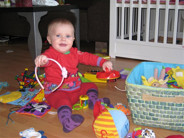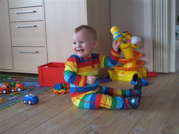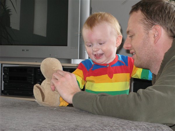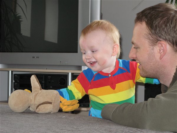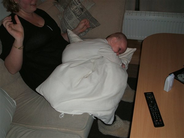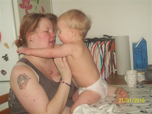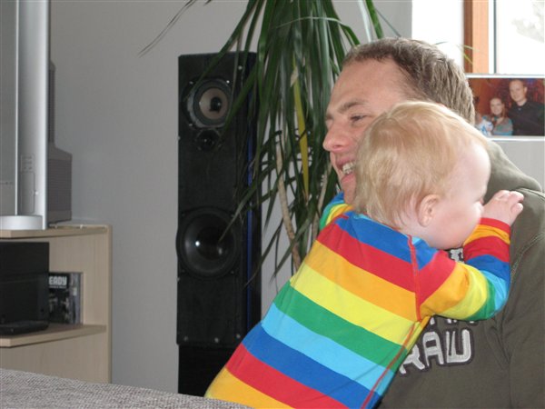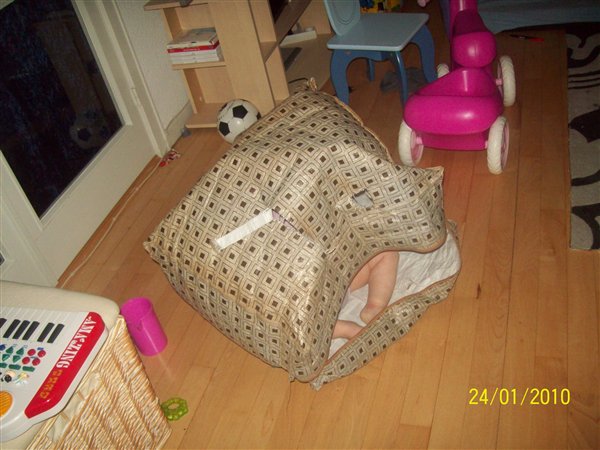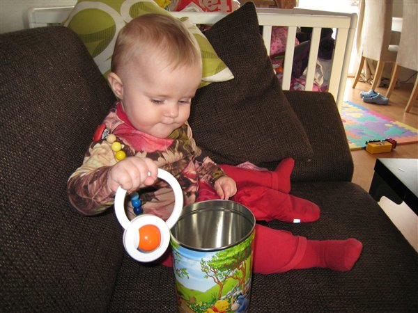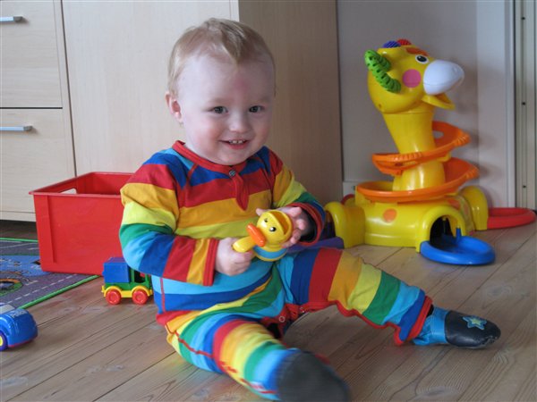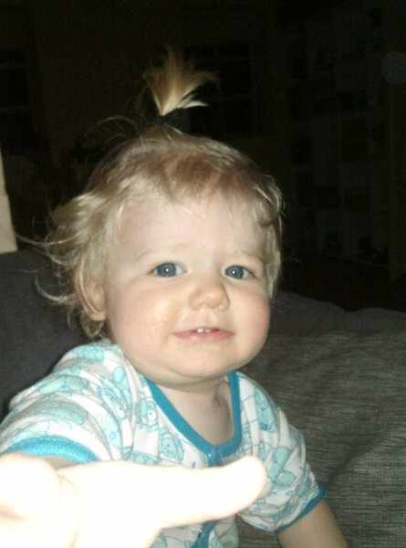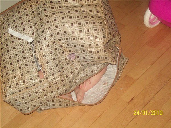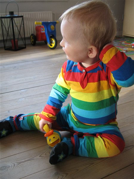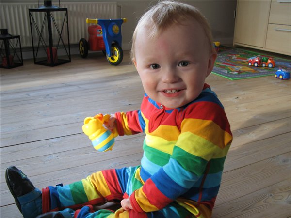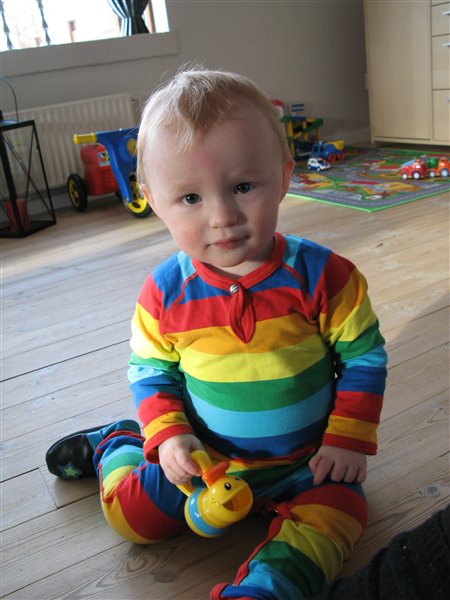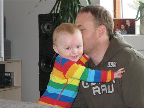 Og det andet, vist før, men elsker det billed hvor han har fundet Naias dukkevogn frem og putter sin egen dukke deri
