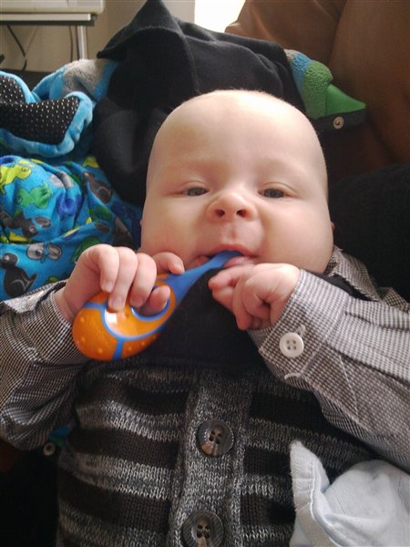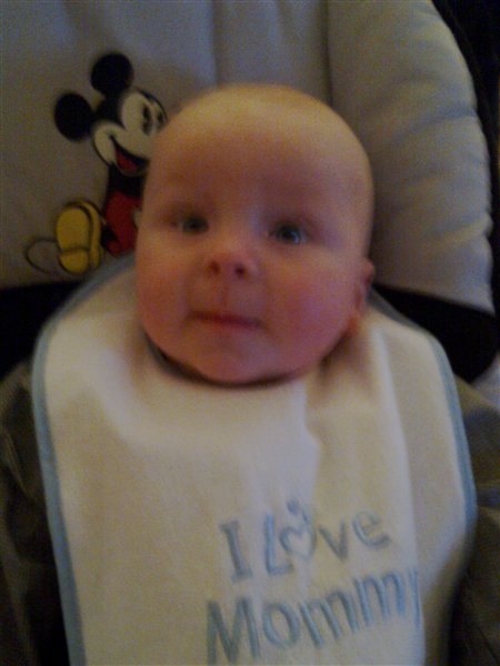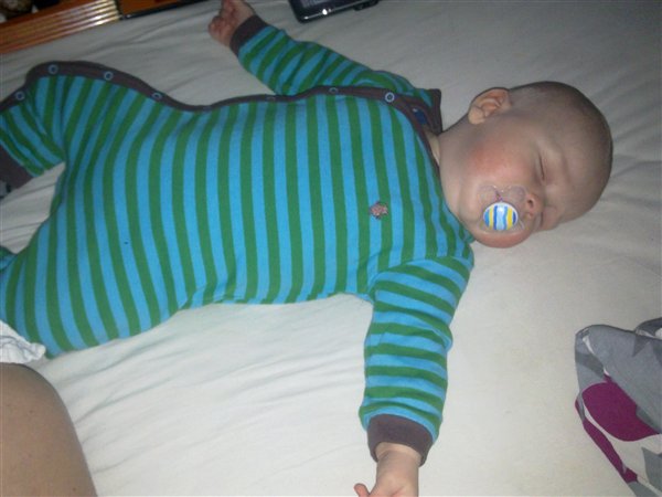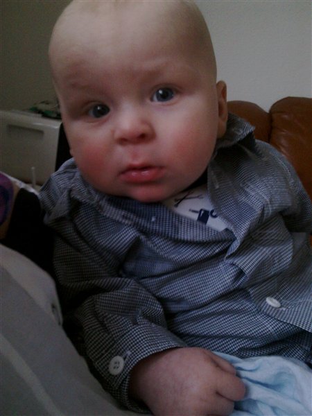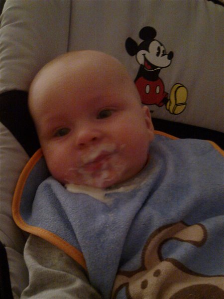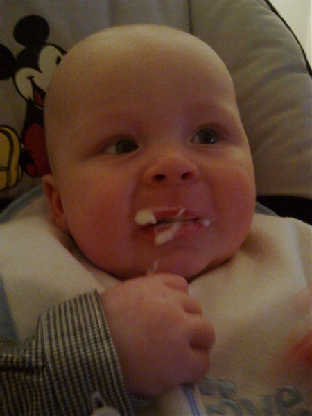....af sin lille purk på 3,5måned som startede på grød i torsdags! Sp mente at vi godt kunne starte nu fordi han var født så lang tid over tid, at han reelt var 4måneder!