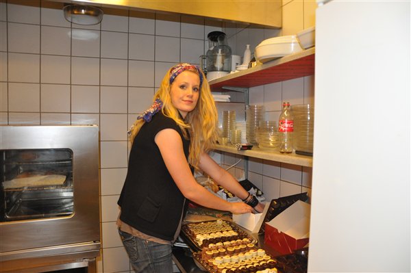 Øverst dejlige Ditte som knokler løs i køkkenet