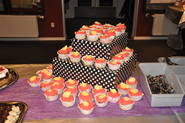 De fine muffinds med kandiserede gule rosenblade i chick opstilling a la DK