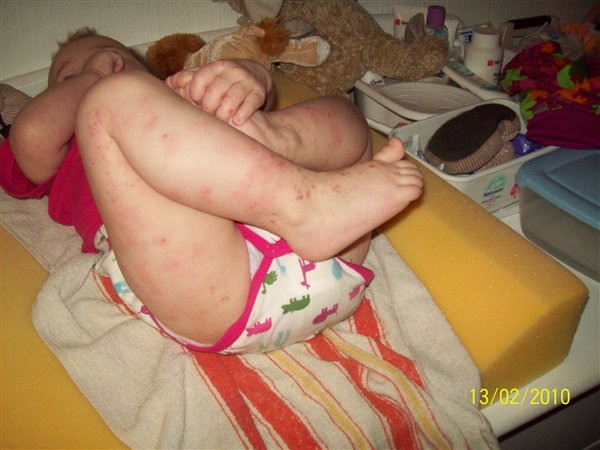 Nårh men Helene mit råd er at i får en fast rytme hver dag med at hun 1 gang hver dag bliver skyllet med en bruder, hun må IKKE komme i kar bad, tør hende godt og smør hende over hele kroppen med en fed creme, evt decubal. Og undgå homon cremen, og det gør i HVER dag. Og selv følgelig en body sæbe uden parfune osv, vi har den fra libero.