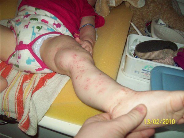 Billede 3-5: Hendes ben med inficeret eksem. meget slemt.