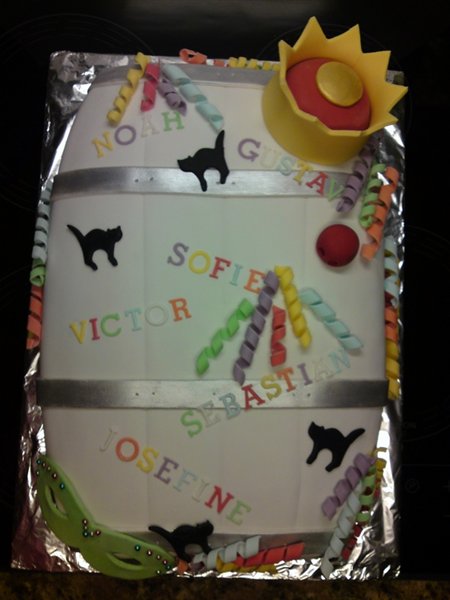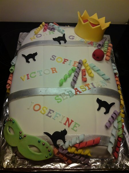 Ja så blev det til en fastelavnskage.. bestilt af en dagplejer, så derfor de mange navne
