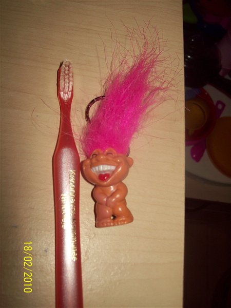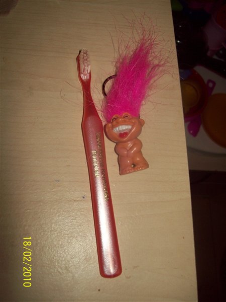 Hun fik både en ny tandbørste og en søde grinede trold. Sådan nogle fik jeg også som barn.