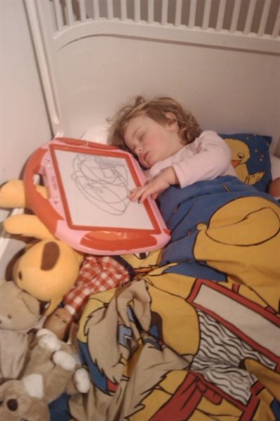 Den lille kunstner er faldet i søvn midt i et mesterværk