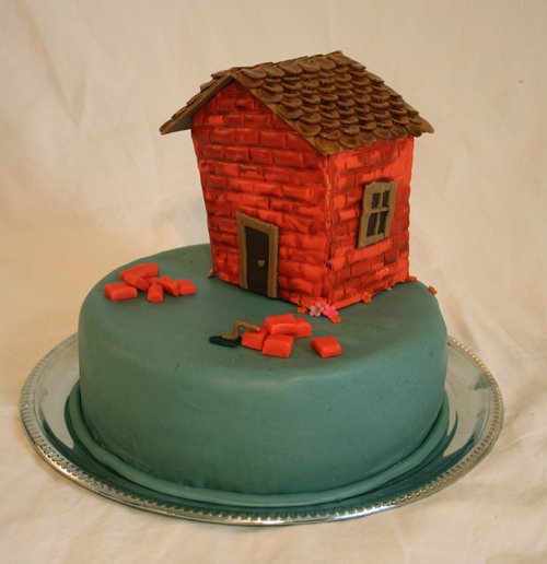 ! Det var enten en rund eller firkantet kage og så var det bygget et temlig skævt hus på med lidt spredte mursten og murerske ved siden af. Er der nogen af jer der ved hvad det er for en kage og hvor jeg evt ka finde billedet igen?? Har prøvet at google det men kan ikke finde noget