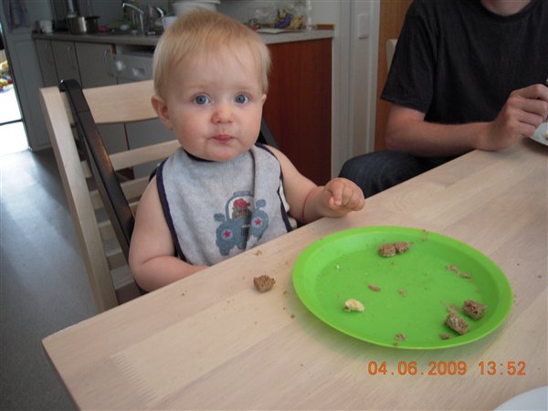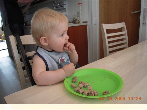 Det er meget forskelligt fra barn til barn. På de her billeder er Emil 10mdr gammel og spiser lige så fint. Han veninde på samme alder smed det bare på gulvet osv. SÅ meget forskelligt.