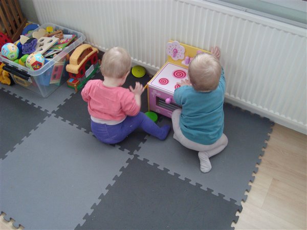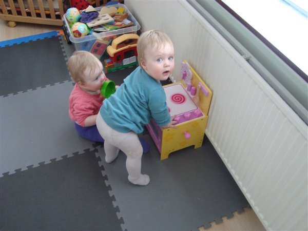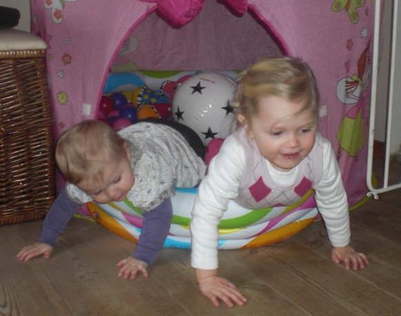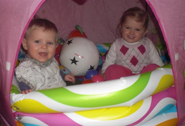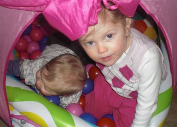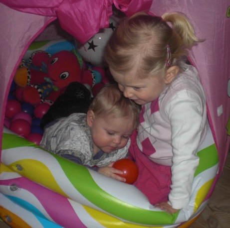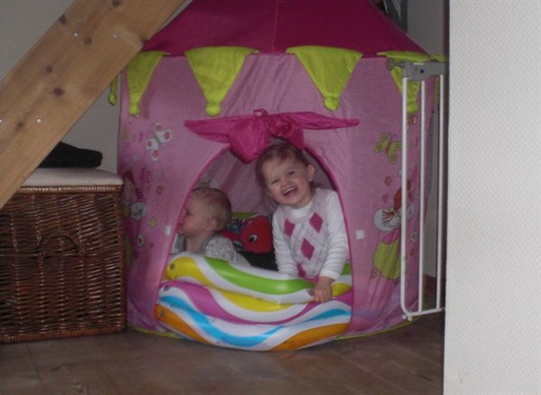 Og Bianca's prinsesse-telt med bolde-bassin, er nu blevet flyttet ned i stuen under trappen. Så nu kan pigerne fjolle rundt derinde sammen.