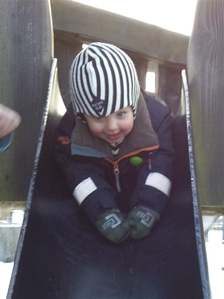 Fik kun taget billeder af ham på 'baby' rushebanen, da jeg ikke kunne nå at tage nogle i de store rør - jo af hans hat osv..