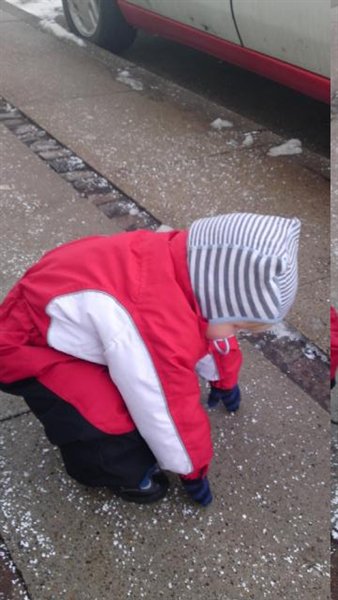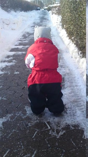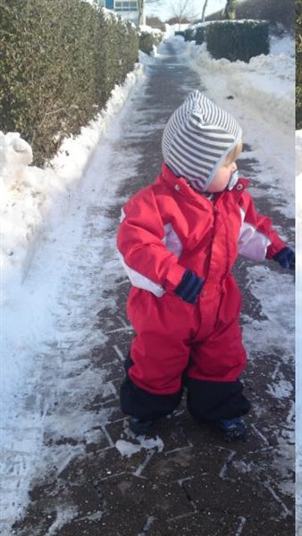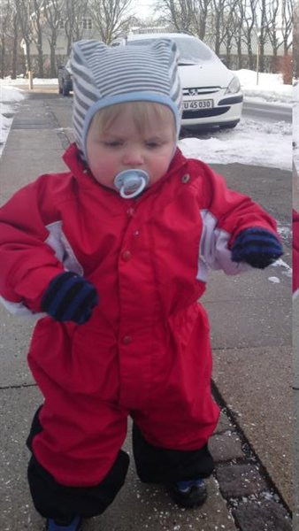 Emils astma tænder helt af igen og tænkte at vi kunne prøve at gå en lille tur så han kunne få lidt frisk luft, og den var han med på og for første gang havde han rigtig vinterstøvler på, og han virkede bare så stolt, klappede dem flere gange og sagde 'sko'