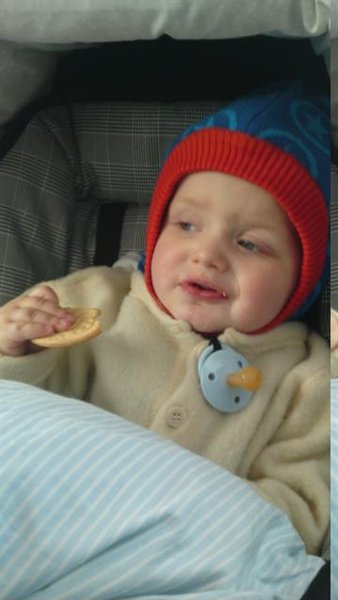 Vi kommer hjem og så spiser Emil HAN SPISER og så er han ellers færdig og komme ri seng lidt over 5 og han sover bare som en sten.