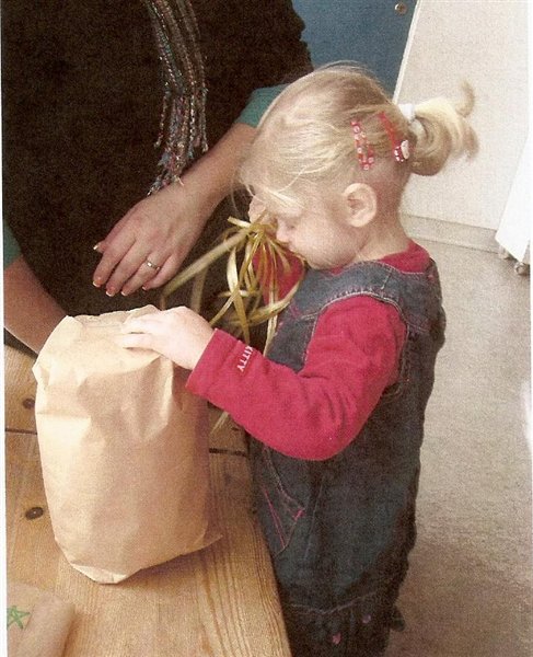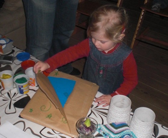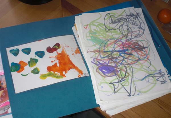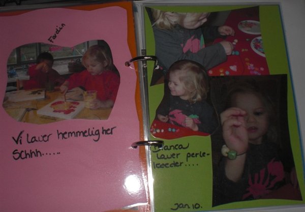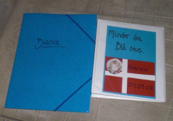 Bianca fik også gaver med hjem. En stor spand med modeller i forskellige farver og en masse former. Og så fik hun en mindebog med tegninger, sange og fotos med hjem, samt en mappe med de tegninger/malerier, som hun har lavet i løbet af sin vuggestue-tid derovre (der er lidt fotos forneden)
