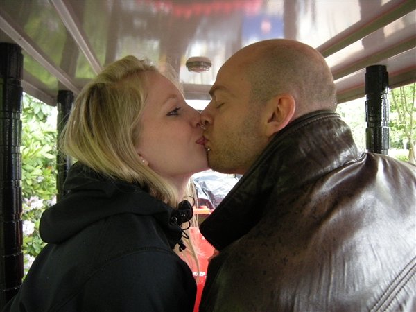 Og et kyssebillede fra toget i legoland i regnvejr.