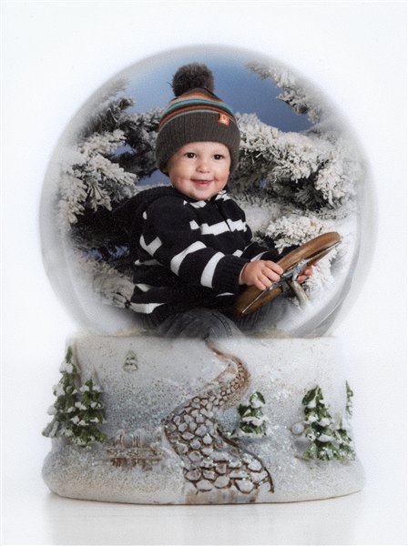 Billedet hvor han sidder i kuglen, er det der var på kortene. Det andet er det originale billede (inden han blev sat i kuglen).