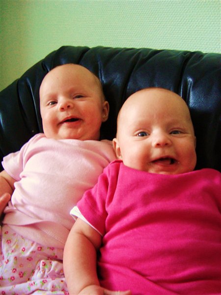 Amalie vejer nu 12,1kg og måler 79cm, hun kom til verden med en vægt på 2240g og 46cm.... Og Laura vejer nu 11,9kg og måler 78,5cm, da hun kom til verden vejde hun 2140g og målte 47cm... Ja nu har vi ikke babyer mere men to dejlige børn, som der er krudt i røven af. De kravler og rejser sig op over alt, de er også begyndt at stå selv og holde balancen i 5-10 sek...