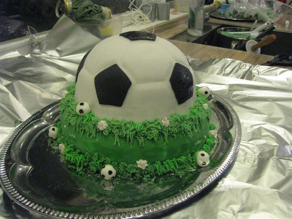 Lavede kage i en fodboldform.