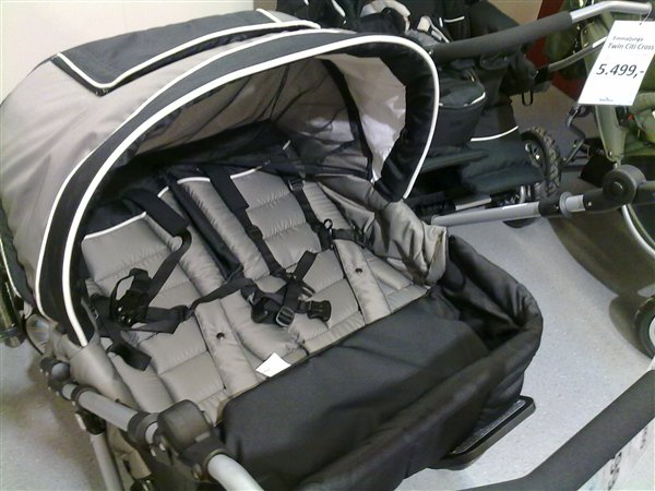 Jeg køber en kombivogn. Har undersøgt SÅ meget omkring det. En tvillingebarnevogn er kæmpe stor. Hvis du skal over en kantsten med den eller dreje skarpt, så skal du næsten have den op i lodret stilling, for at få den op over eller vende rundt!