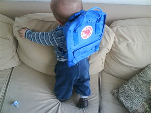 Vi har kun klapvognen med derned og gider simpelthen ikke slæbe rundt på den store pusletaske. I klapvognen er der små rum, hvor vi kan opbevare maden og så har jeg købt denne super søde mini Fjallraven til bleer og vådservietter. Den kunne jeg altså ikke stå for.