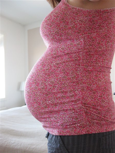 Her 33+0 og med morgenhår (eller hvad man nu kalder det efter en times lur kl 16 om eftermiddagen - hence the groggy expression...)