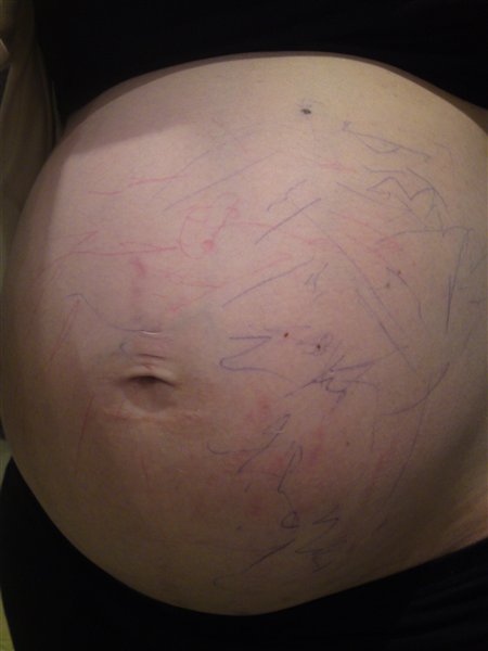 På billed nr 2 har min søn på 2 år, fået lov til at bruge min mave som tegneblok.. Det syntes han var utrolig sjovt..