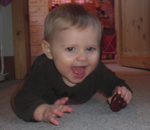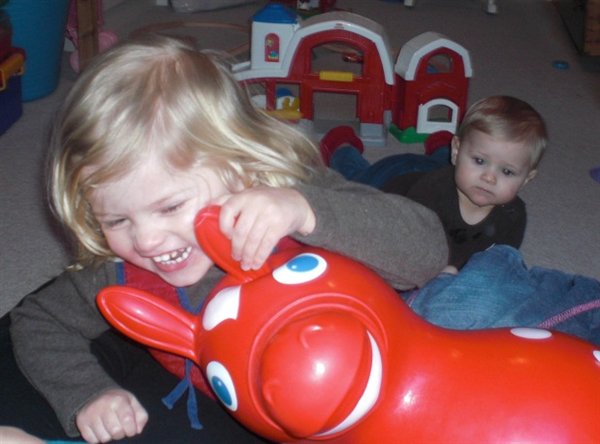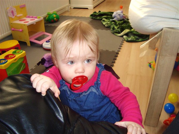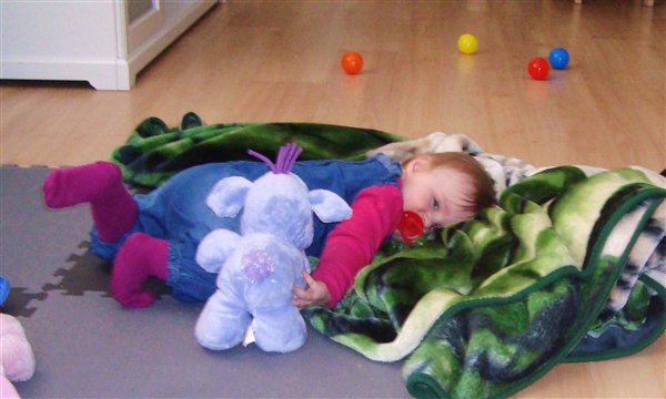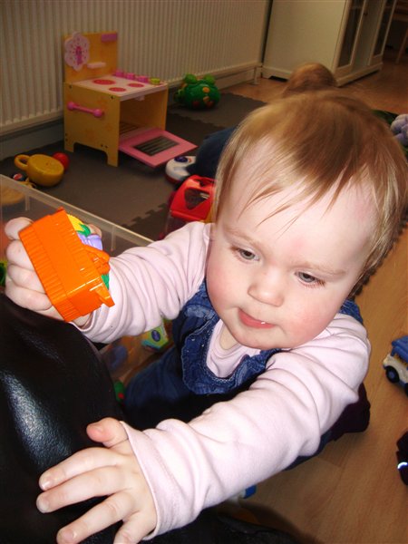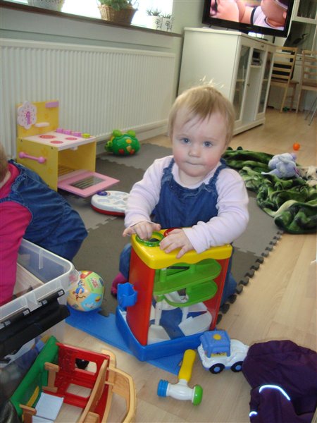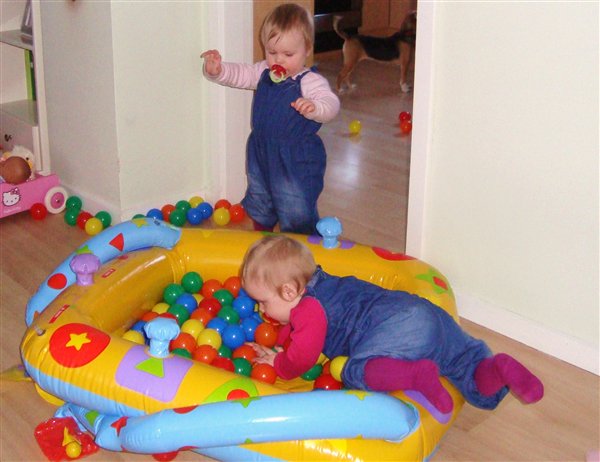 4-Amalie øver sig i at stå mens Laura elsker at kravle i boldene..