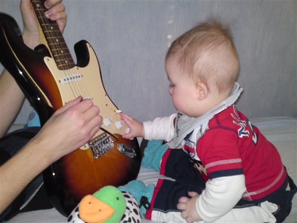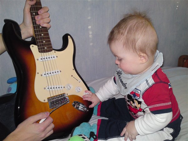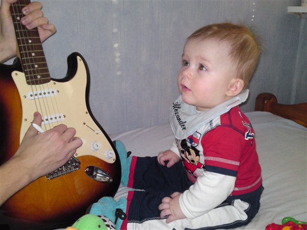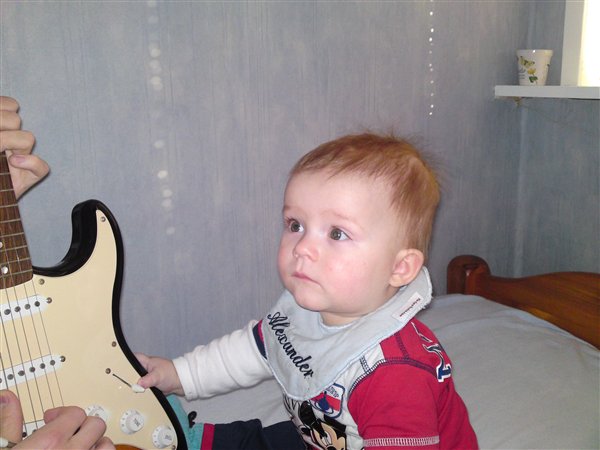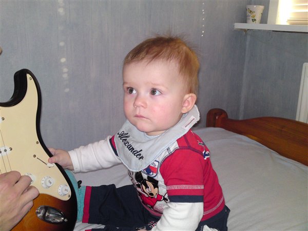 Her er lidt fra i søndags,hvor min lillebror spillede guitar for Alexander...han var meget imponeret,og ville rigtig gerne bide i den fine,skinnende guitar