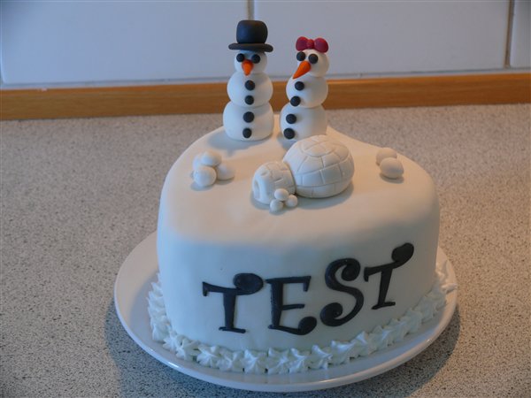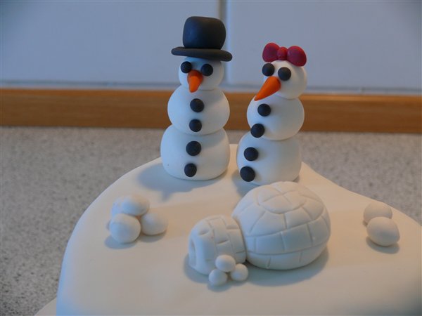 Den med snemændene er en prøvekage til min datters dagplejemor som har bestilt konfirmationskage. Hun hader alt sneen så nu hvor det smelter ville vi drille hende lidt