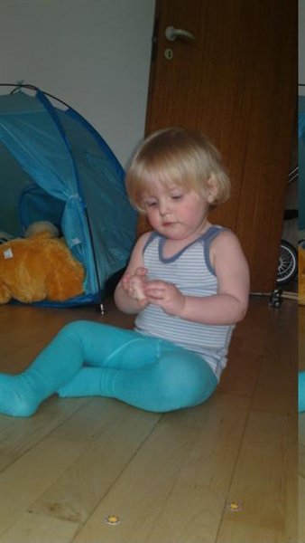 Men nogle ting han er begyndt på selv, han tørre selv sin næse for det meste, han tørre sin mund når han har spist, han tager selv hagesmæk på, skal dog lige have hjælp til at lukke den, hvis han ikke kan finde sin sut kommer han og siger det 'sut' så vi ved han leder efter den, han prøver selv at tage elefant hue på, men går ikke helt endnu. Her i dag da vi skulle spise aftensmad fik han ved et uheld legetøj med op til bordet, og Emil ligger det pænt langt ind på bordet så jeg kunne give ham hans mad og så spiste han uden at røre det overhovedet