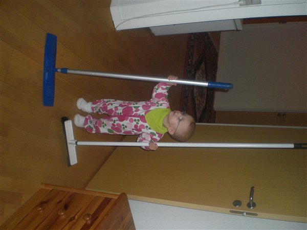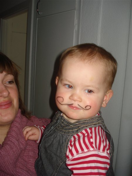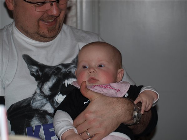 Han render nok rundt langs banderne og råber; hvor er far og så kan mor her så selv rende rundt og lave de ting vi skal..