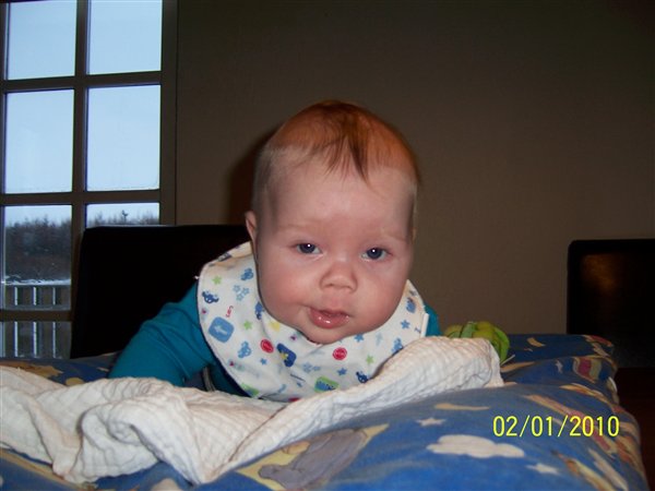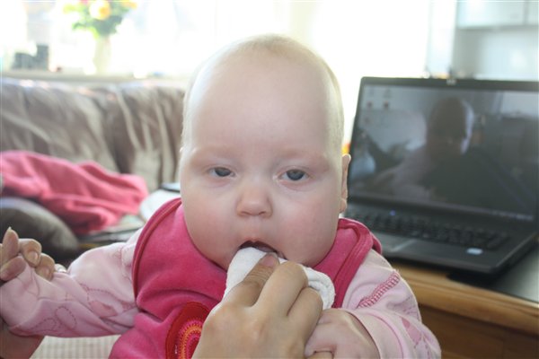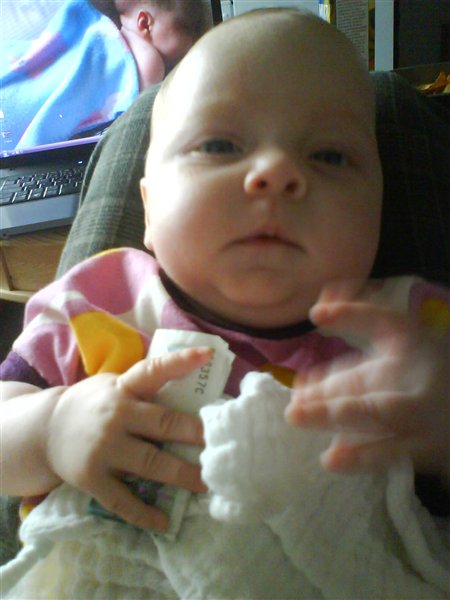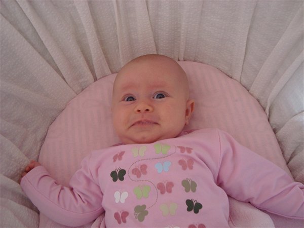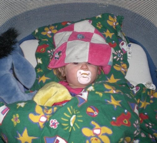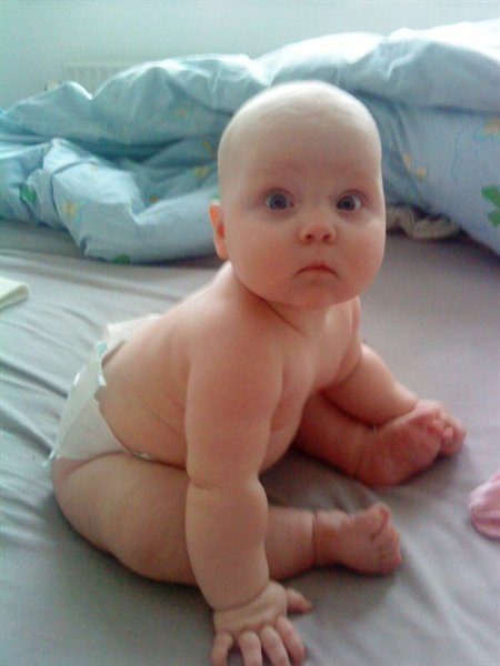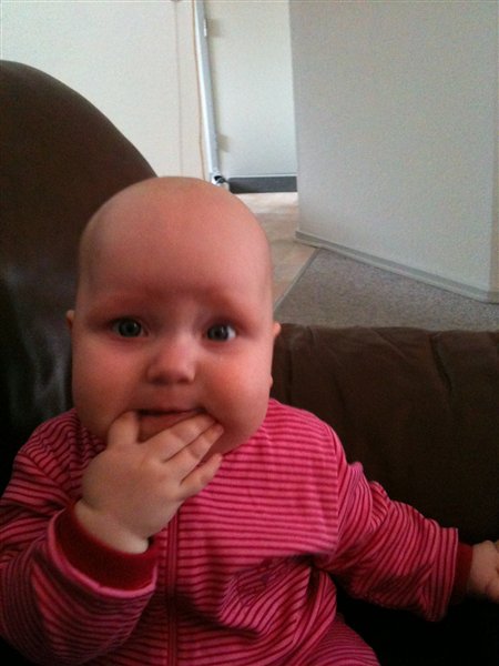 Billede 3: lige vågnet og vist lidt skræmt over synet af mor med et kamera