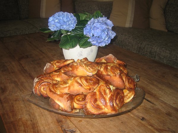 Jeg skal jo have tiden til at gå med et eller andet, så derfor har jeg bagt idag. Jeg har bagt kanelsnegle, hvilket jeg ikke har gjort i mange år, men pludselig fik jeg bare sådan lyst til kanelsnegle