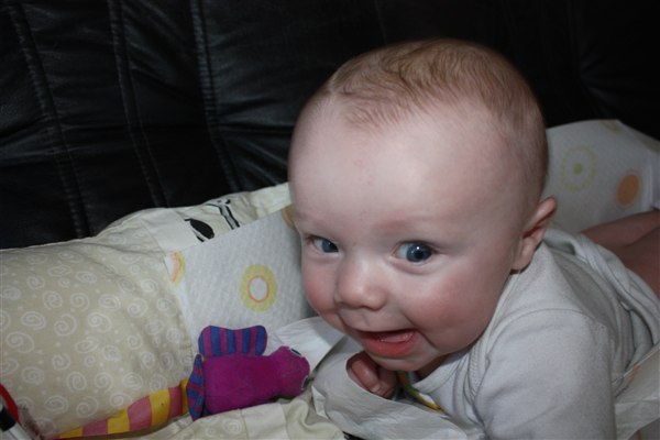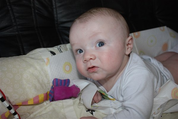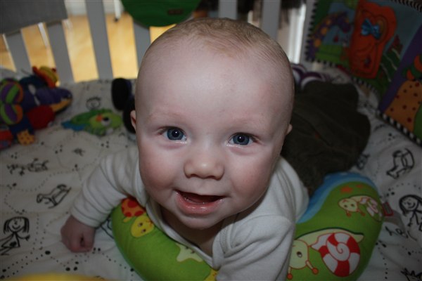 Mors store dreng vejer nu 7,5 kg og måler 63,5 cm i en alder af 4 mdr