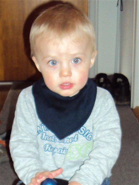 I får lige et af Frederic, her sidder han på sin scania lastbil og kører rundt i lejlighed.