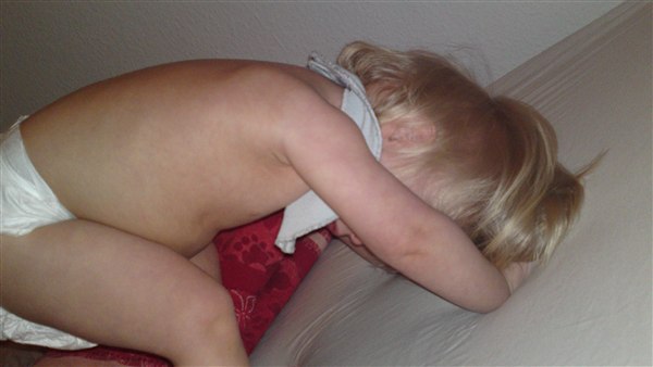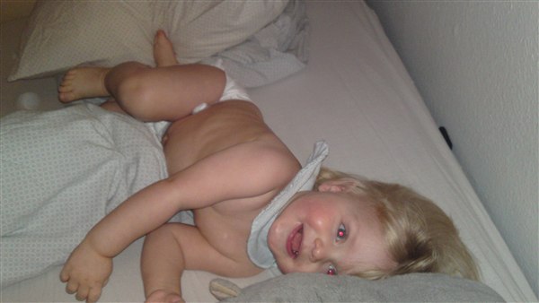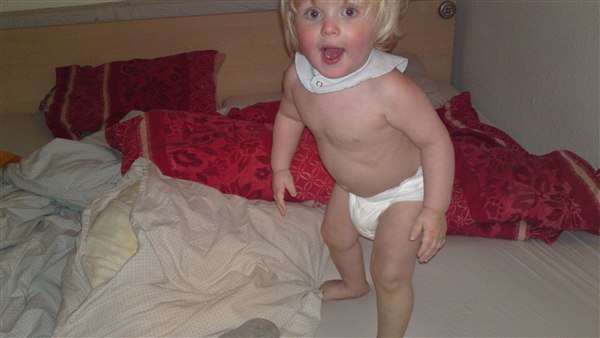 Haha, herlig dreng! Og så sidder savlesmækken som en kappe...