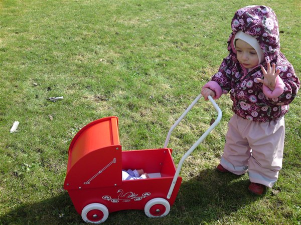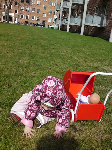 Ej, hvor er hun skøn!!! Hun er så dygtig til at gå tur med sin lille Robert!!