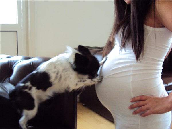 Ej, det er da bare VILDT sødt. Min hund er også helt vild med maven - så det bliver spændende at se, hvad de synes om den lille baby, når den kommer ud!