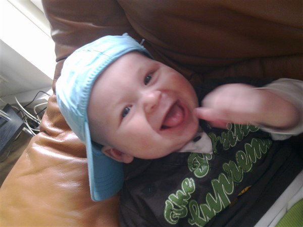 I løbet af de sidste 14 dage er der sket SÅ meget.. Nicolai er gået fra at sove i vores seng mellem os til, at sove i EGEN seng på EGET værelse... Og så er der kommet TO tænder... Nu bruger vi klapvogn i stedet for barnevogn.. Han har selv sagt fra mht. amning.. Han er vokset HELT vildt de sidste tre uger... Ja faktisk 4cm og 900g... Nu vejer han 9,8kg og er 74 cm.... Han spiser havregrød og får små rugbrødshapsere... Hvor er min lille baby?