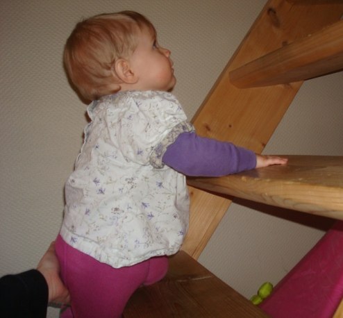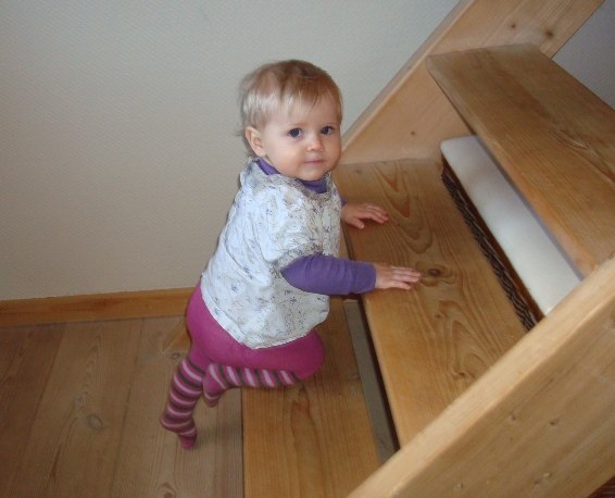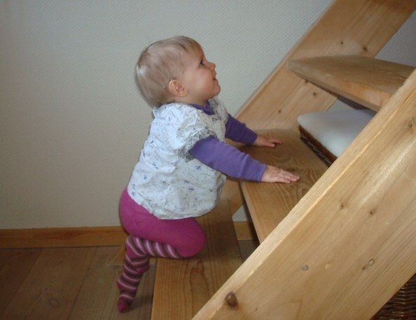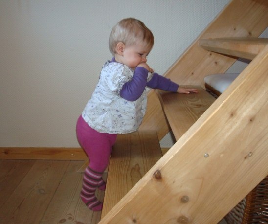 Nu er Bianca ellers helt ferm til at komme op og ned af trapperne, og jeg bekymrer mig dårligt om det mere, når hun skal op og ned, for hun er rigtig god motorisk og klarer dem fint!