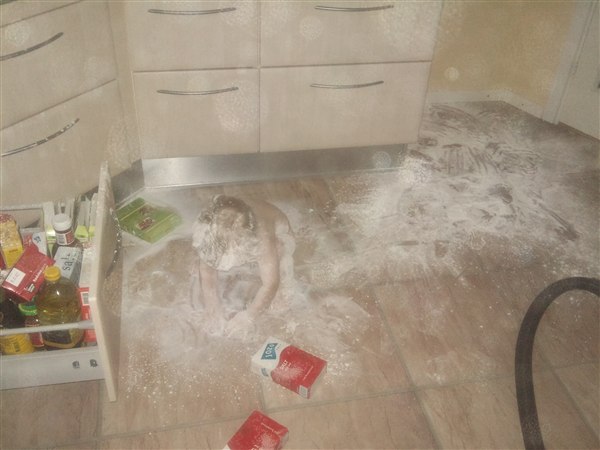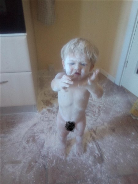 Her er Viktor med maizena og salt over det hele...