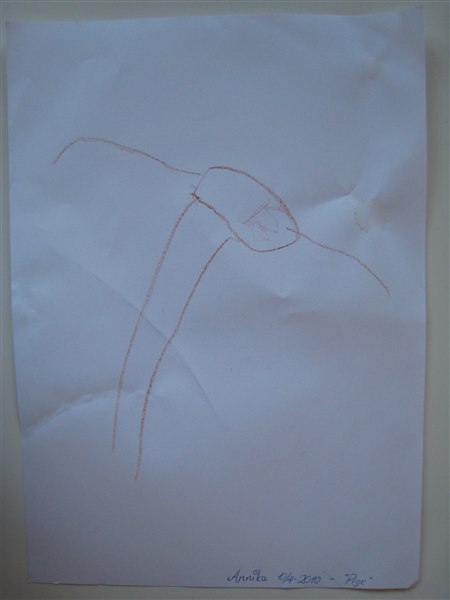 idamaria83 skriver: SE lige hvad min ældste datter har tegnet: (Det er efter tøsens eget udsagn en pige - og det kan der da ikke være nogen tvivl om den er nøjsomt dateret og puttet i gemmeskuffen til trods for, at den er tegnet på et stykke kaffeplettet og krøllet papir!!)