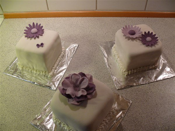Jeg har idag lavet 3 prøvekager for at finde den helt rigtige sammensætning inden den store bryllupskage skal laves !Alle 3 er med 2 chokoladekage bunde og en drømmekage bund. Af fyld er der en med tobleronecreme og vanillecreme med friske jordbær og hindbær, en med tobleronecreme og pærecidermousse og den sidste med tobleronecreme og hindbærmousse ! Se vensligst bort fra den ikke særlig glatte fondant og den meget simple pyntning....men det sku gå lidt stærkt og det er jo smagen der skal vurderes!