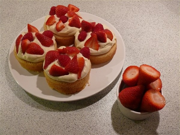 Det blev også lige til en lille fredag hyggedessert ! Det er drømmekagereder fyldt med vanillecreme og friske jordbær og hindbær! Det smagte bare heeeeelt vildt MUMS!!!