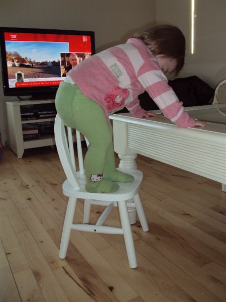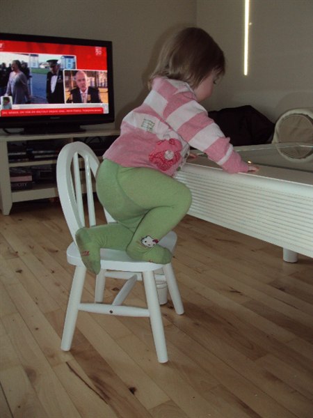 At stille sig op på alting..jeg bliver snart sindsyg... Det alt alt alt hun gør det på.... hun stiller sig op på sin stol, sin bænk, sin lille kommode, sin lille bil(som er vildt farligt for den kan jp køre) håber snart jeg kan få hende lært a man ikke må....