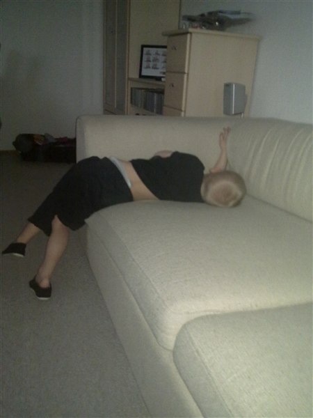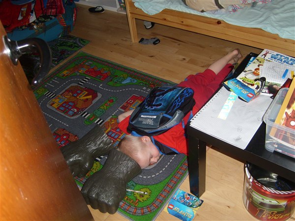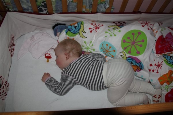 nåmen til jer der spurgte, så har jeg lige været inde og tage billeder af pigernes sovestillinger. først lilja, som er faldet i søvn forover, og så luca, som også er faldet i søvn forover men er tiltet til siden